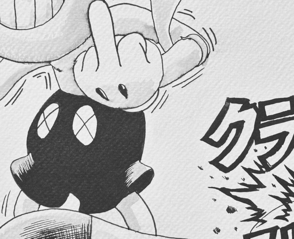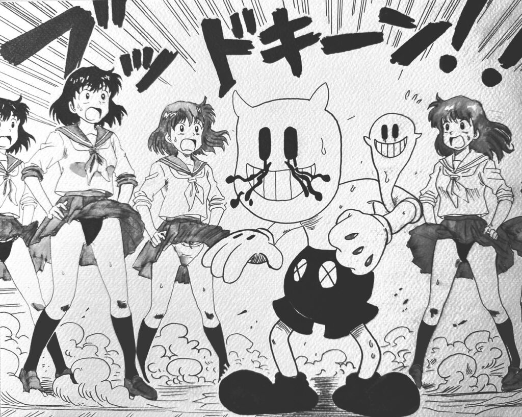 Power and parody merge into a single manga frame where chaos becomes cartoon.