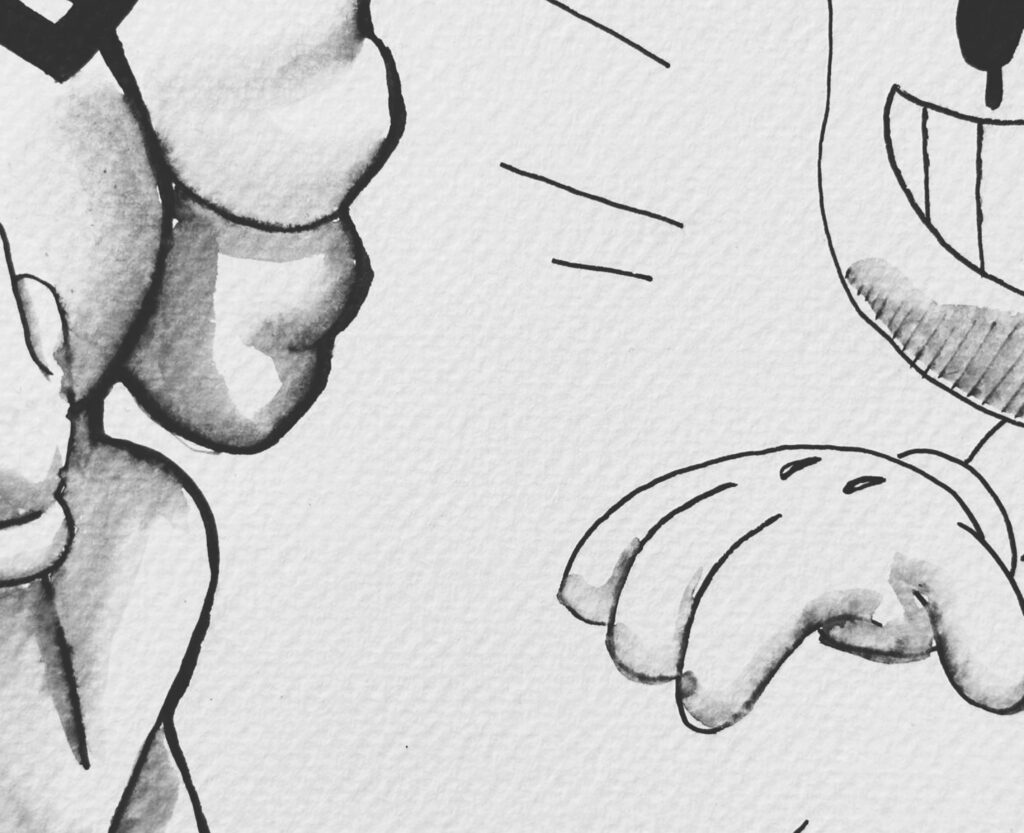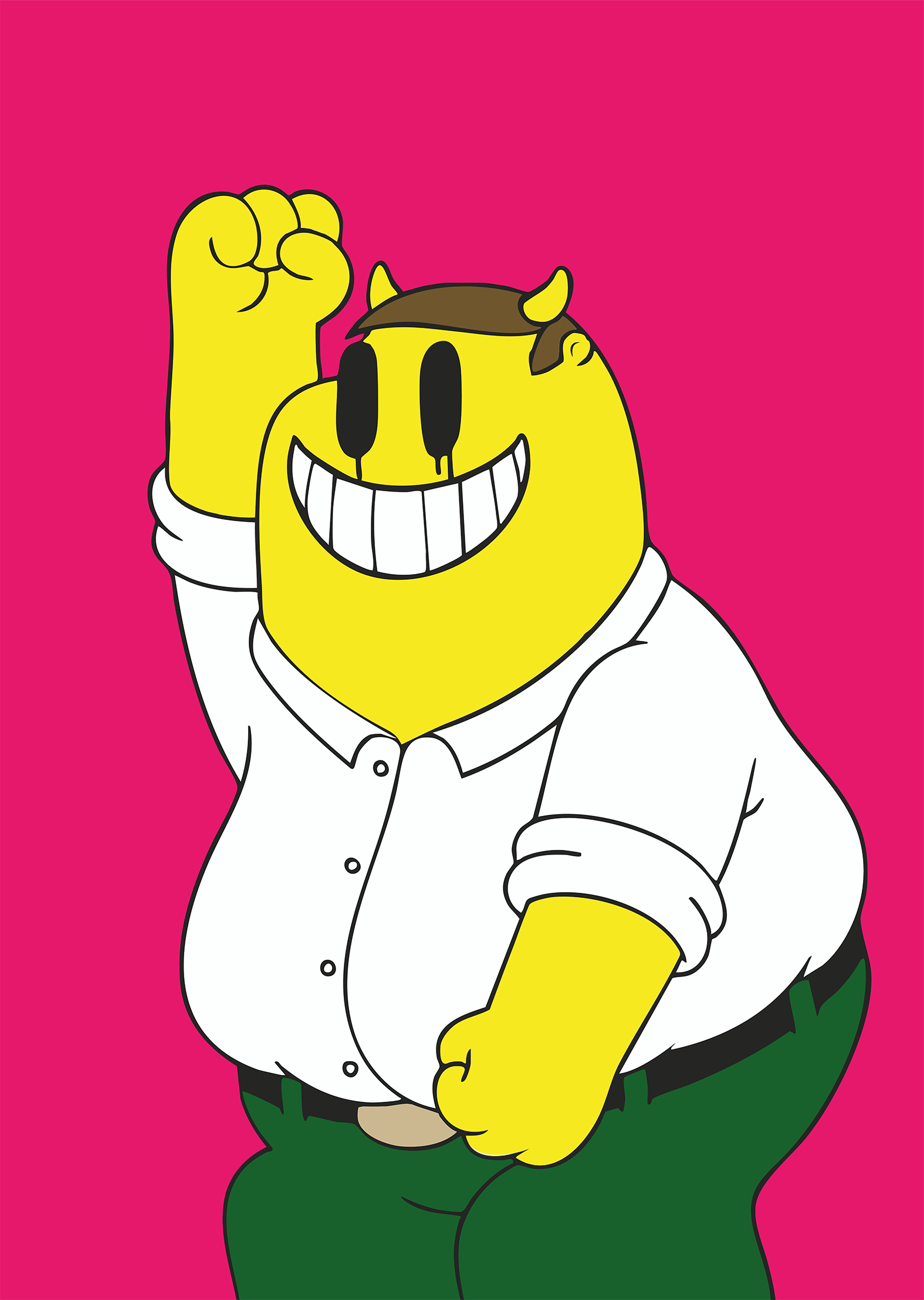 Ogni linea è insieme omaggio e distorsione — una riflessione su forza, assurdo e violenza gioiosa dell’immaginario pop.