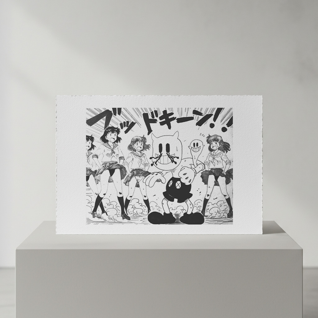 Vento mette in scena DAIMO come trickster puro: un personaggio che trasforma un cliché manga in mito contemporaneo, ribaltando innocenza e trasgressione con un sorriso inquieto.