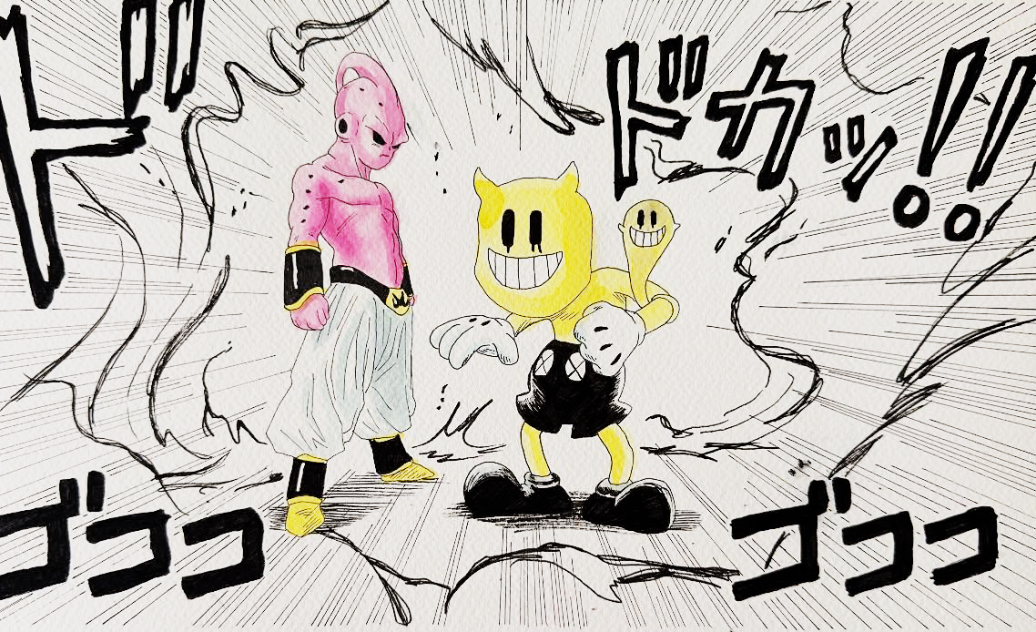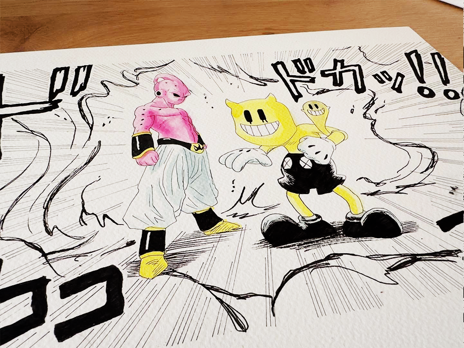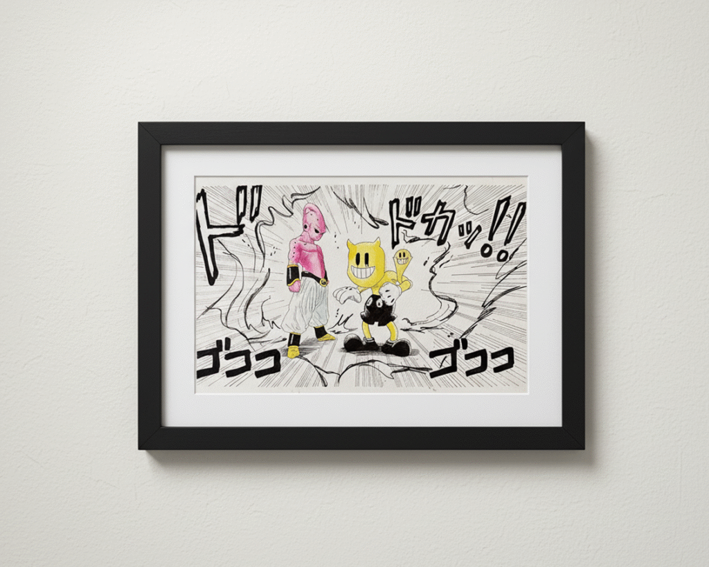 Parte della serie DAIMO Stories ispirata al linguaggio manga, Majin Buu Scene estende il dialogo tra mito giapponese e parodia pop occidentale.